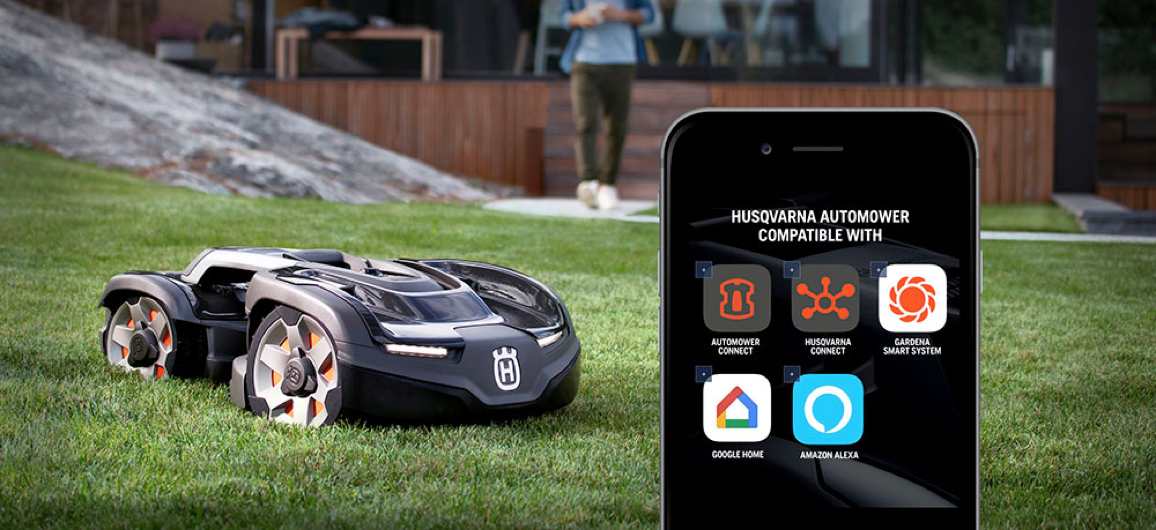 Husqvarna Mährobotertechnik mit Allradantrieb und Gelenkfahrwerk (bis zu 70% Steigung),